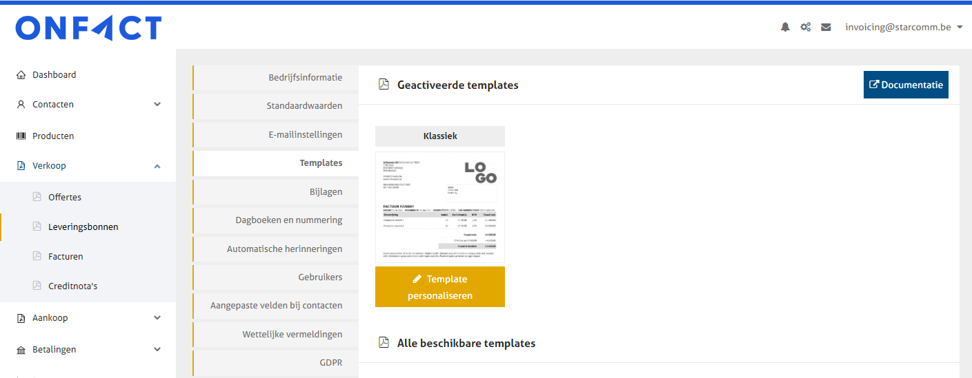 Let op! Werk je met een template die niet compatibel is met deze configuraties, dan zal er een waarschuwing verschijnen. Contacteer <support@onfact.be> om je template te updaten.
