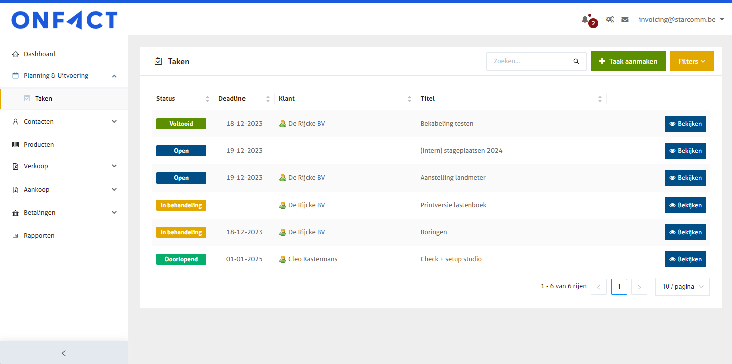Heb je een '[Premium](https://www.onfact.be/prijzen)' abonnement? Dan is je Taken-module meer uitgebreid. [Lees hier meer over onderaan de pagina](#taken-in-premium-abonnement).&#x20;