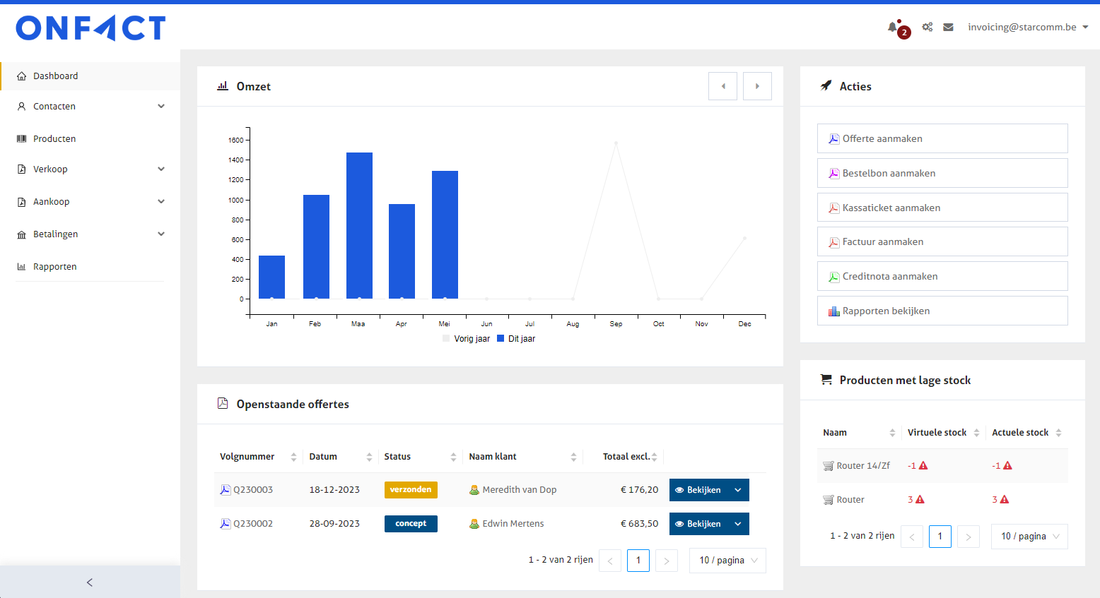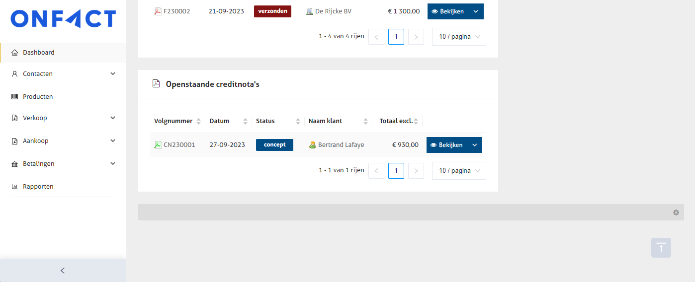 Op het onFact dashboard zijn, afhankelijk van welke apps en koppelingen je geactiveerd hebt, een aantal widgets te zien.&#x20;