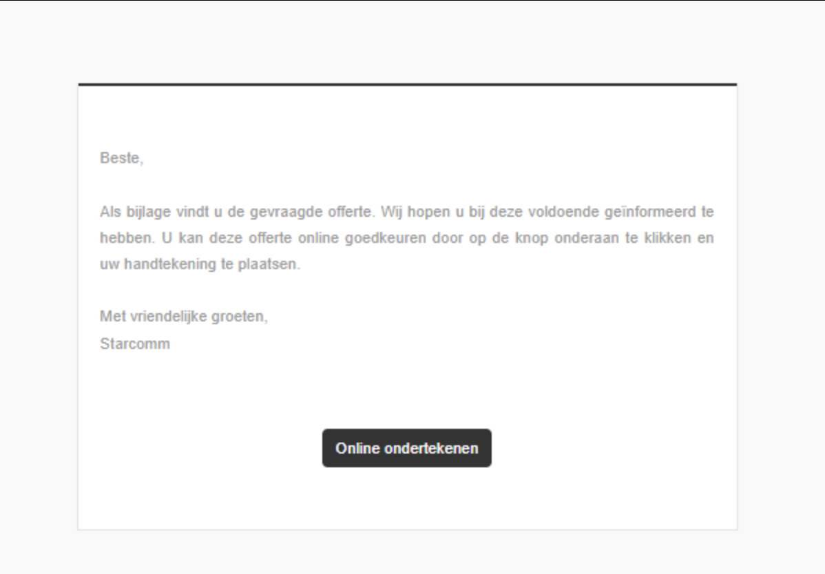 Via onFact kan een klant een offerte digitaal ondertekenen; dit werkt op basis van een ondertekenknop in een e-mail. [Lees hier](https://documentatie.onfact.be/onfact.nl/overige-functies/online-ondertekenen) hoe je dit heel eenvoudig kan instellen.&#x20;