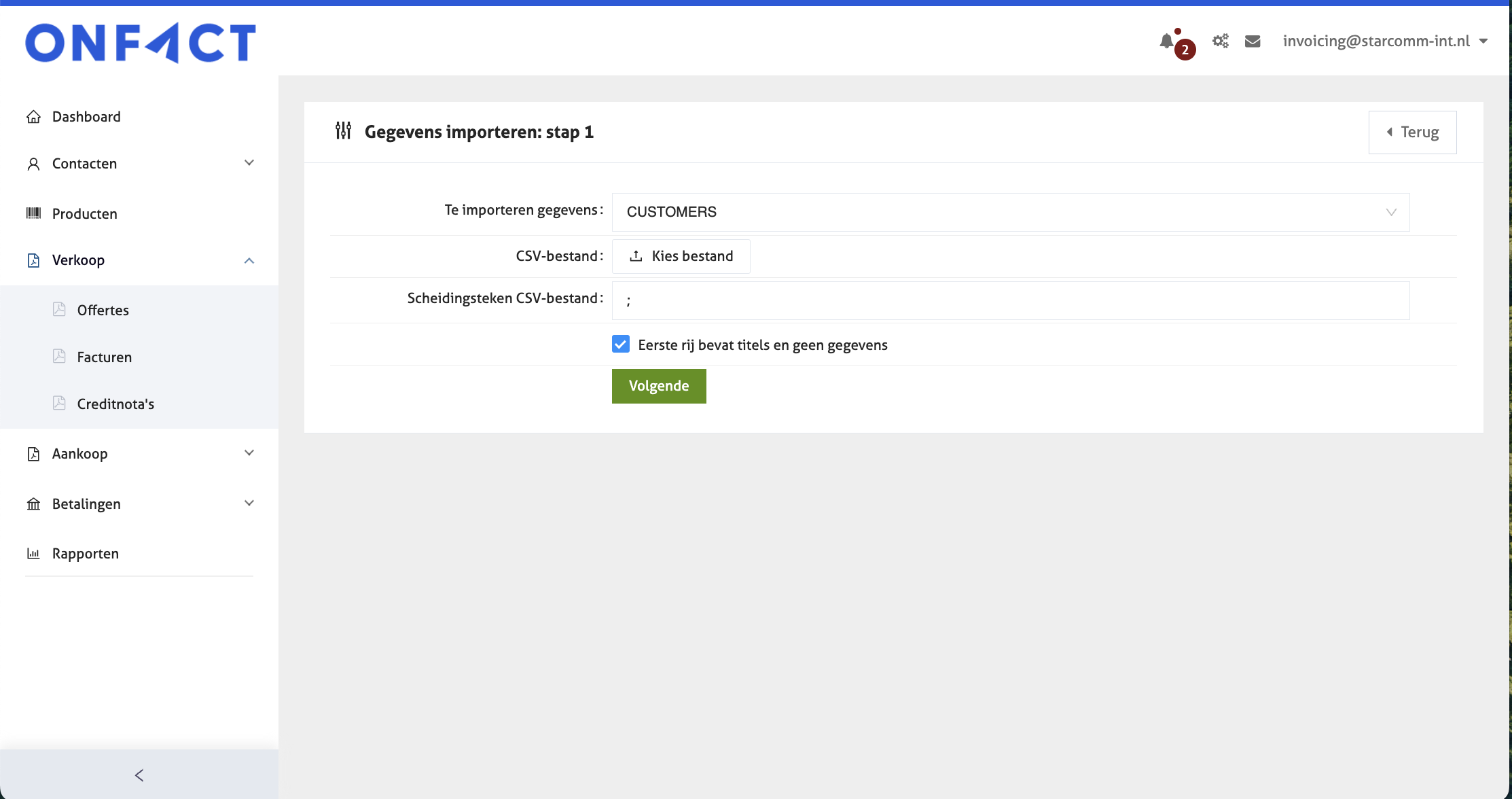 Op basis van een eenvoudig [csv-bestand](https://documentatie.onfact.be/onfact.nl/instellingen/gegevens-importeren#wat-is-een-csv-bestand) kan je een bestaande klantenlijst importeren in onFact. In drie stappen heb je je productlijst al geüpload. Dergelijke import is ook mogelijk met een lijst van leveranciers, of van producten. Hoe je een import uitvoert, [lees je hier](https://documentatie.onfact.be/onfact.nl/instellingen/gegevens-importeren#klanten).