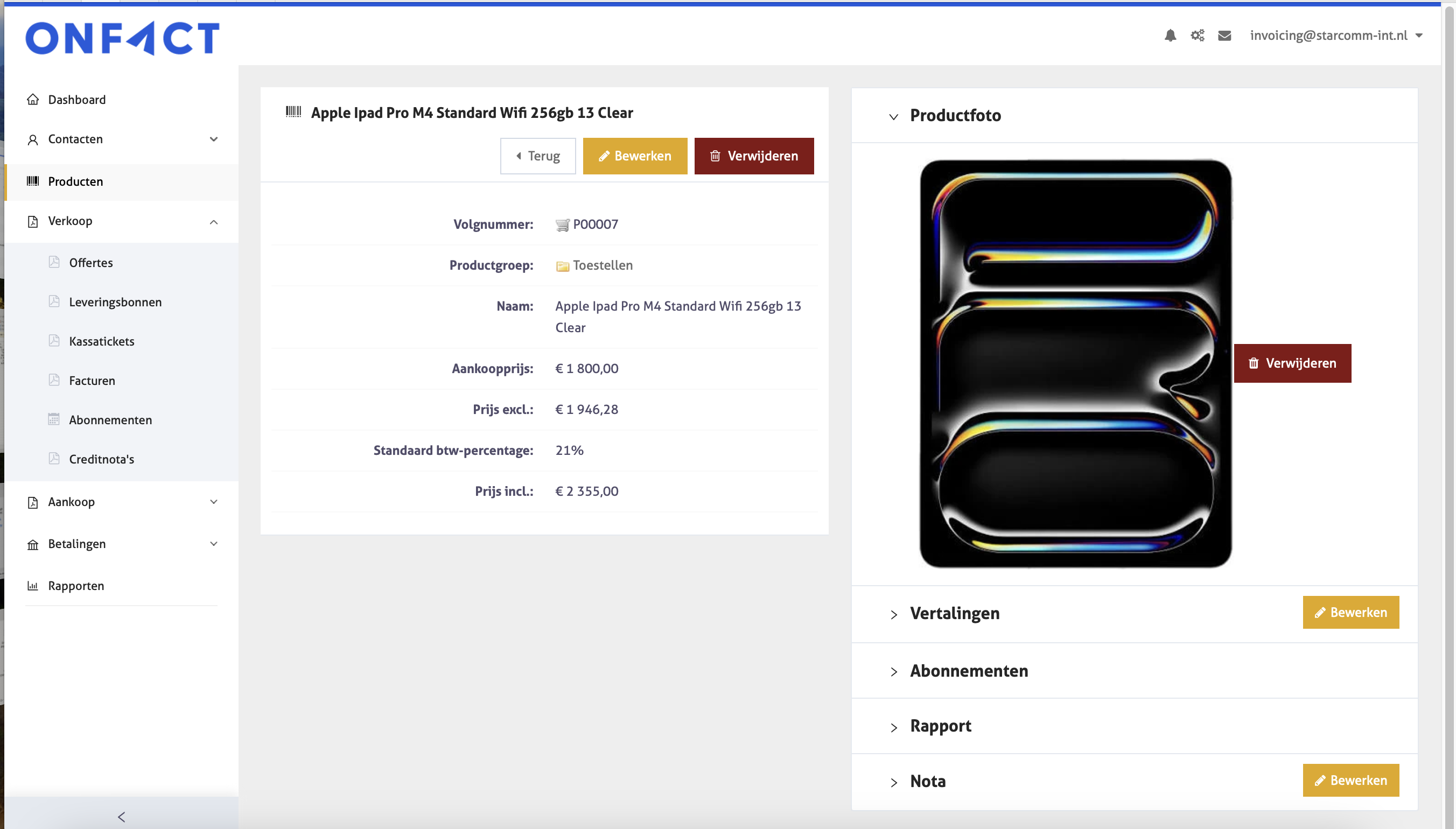 Het is mogelijk om in onFact een productfoto toe te voegen aan je product en deze ook te tonen op je documenten.&#x20;