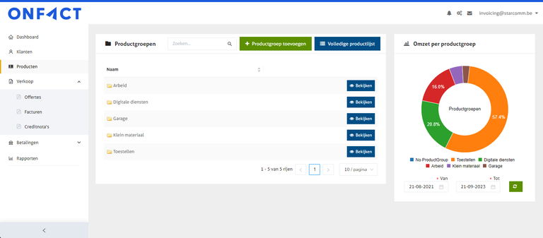 De werkwijze voor het exporteren van producten is gelijkaardig aan deze van klanten. Om de export te kunnen starten, moet je naar de volledige productlijst gaan. In het overzicht van de productgroepen, klik je op de blauwe knop 'Volledige productlijst'.&#x20;